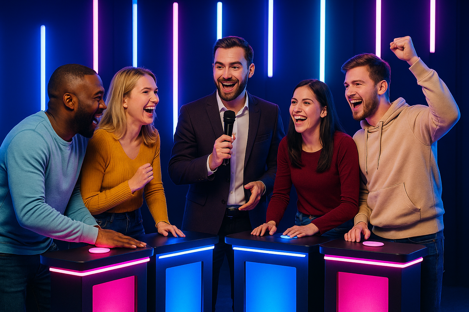 Découvrez SHOWTIME VITROLLES pour vivre une expérience unique en famille, amis ou collègues de travail ! Plongez dans nos jeux de quiz inédits inspirés des plus grands classiques, revisités sous un format original d’une heure. Avec des animateurs passionnés et une ambiance digne des meilleurs plateaux TV, préparez-vous à des fous rires, du suspense et des défis où stratégie et réflexion feront la différence.